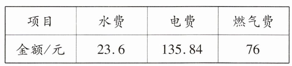 2.【要点探究】下表是优优家某月水费、电费和燃气费的应付金额记录。
