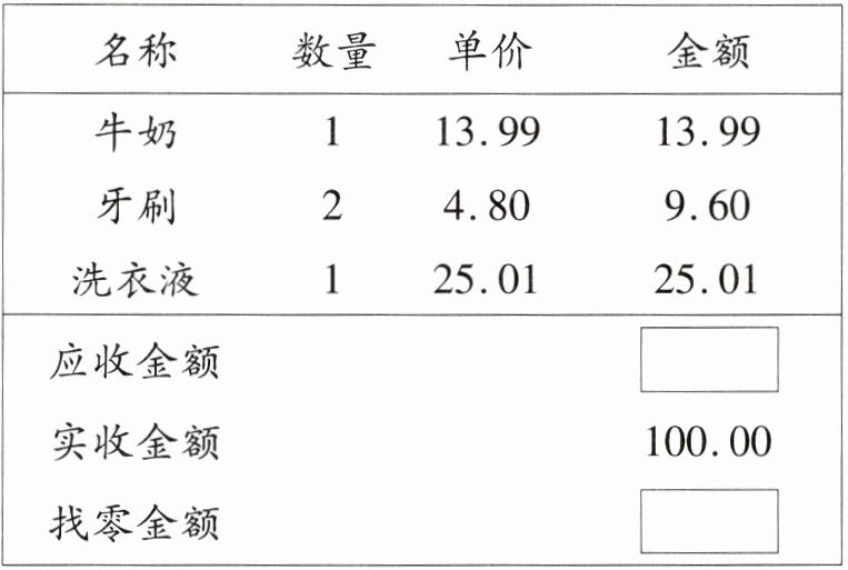 3. 下面是一张购物小票,请你算一算,填一填。[★★]
