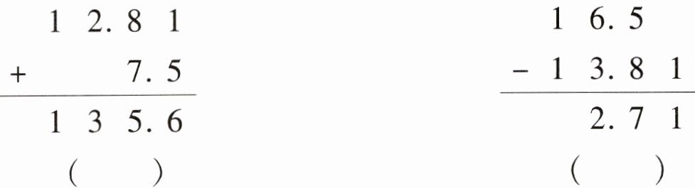 12.81 + 7.5 = 135.6 16.5 - 13.81 = 2.71