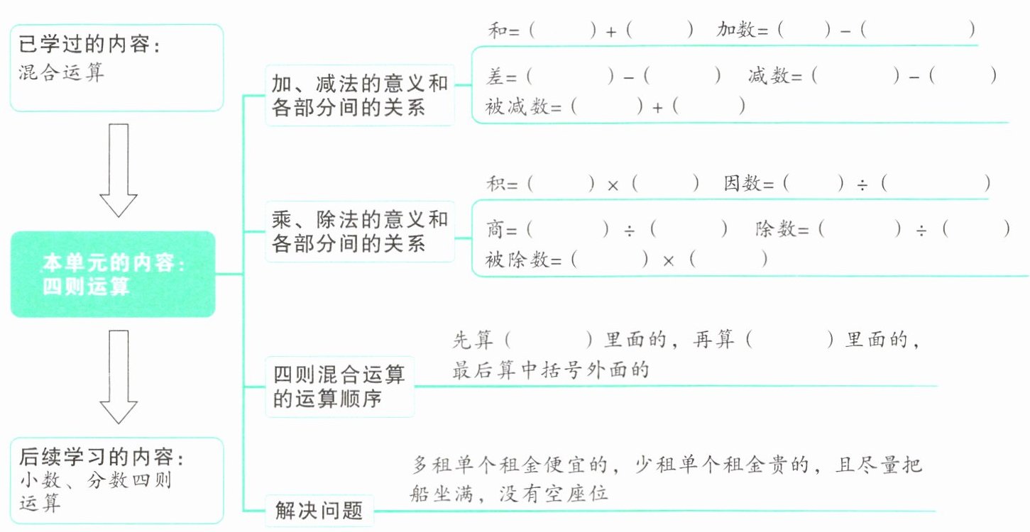 (2)计算 48 × [62 ÷ (25 + 6)] 时,应该先算 ( 加 ) 法,再算 ( 除 ) 法,最后算 ( 乘 ) 法,得到的结果是 ( 96 )。