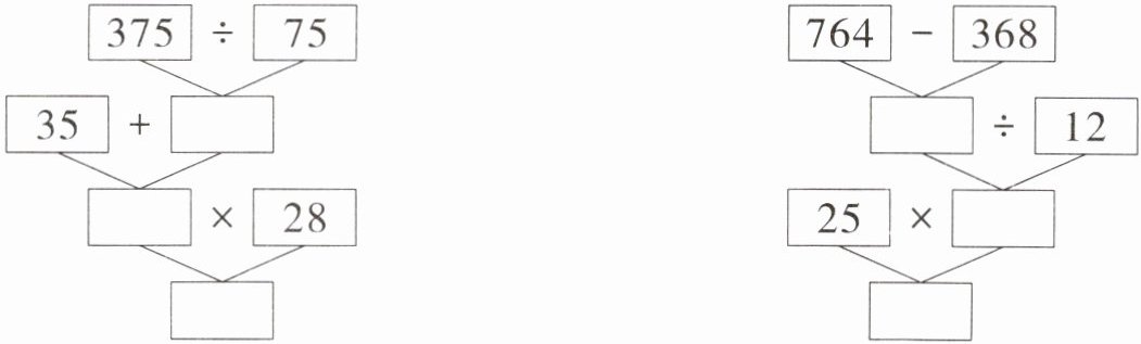 (3)按照顺序计算,并填写下面的 ,然后列出综合算式。