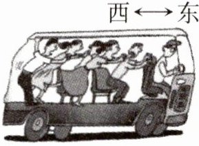 4. 如图所示,公交车上的乘客都拉好了扶手,当车的运动状态突然发生改变时,乘客都向东倾倒,产生此现象的原因可能是 ( )