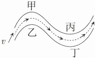 8. 小宇在家观看汽车拉力赛的电视节目,发现汽车行驶速度很快。途经一段“S”形弯道时(如图),他想:在现场观看的观众为了更安全,应站的位置是图中的 ( )