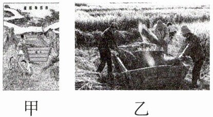 11. 如图甲是节选自我国古代科技著作《天工开物》中的“场中打稻”的情景,我国部分地区仍沿续古人收取稻谷的方法,如图乙。请你用所学的物理知识解释摔打稻秆时,稻粒被打脱落的原因。