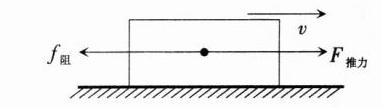 7. 小明水平推动一个重为200 N的箱子在水平地面向右做匀速直线运动(如图),箱子受到的阻力是其重力的$\frac{3}{50}$。求推力的大小,并画出箱子在水平方向上受力的示意图。