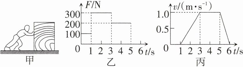 6. 在水平地面上有一长方体木箱,小平用水平推力把木箱向右推动,如图甲所示。此过程中,推力F随时间t的变化情况如图乙所示,木箱前进的速度v随时间t的变化情况如图丙所示。