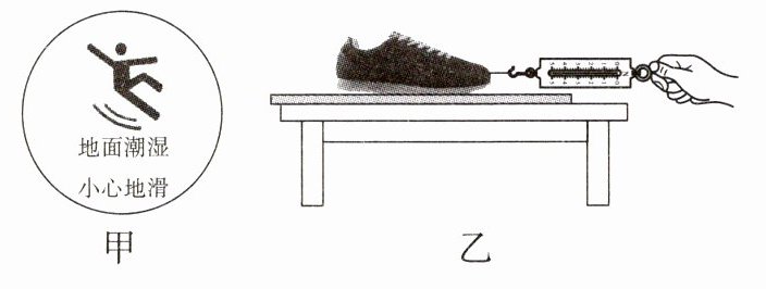 3. 小刚注意到很多公共场所都有如图甲所示的安全提示牌。他想知道:摩擦力的大小与接触面的潮湿程度有什么关系。