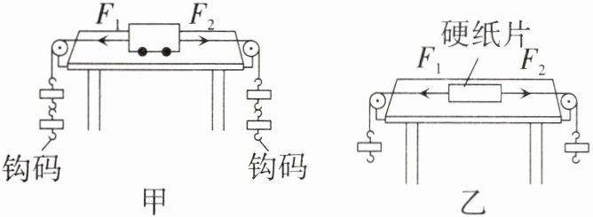 2. 某实验小组利用如图甲所示的实验装置做“探究二力平衡的条件”实验。(所用钩码均相同)