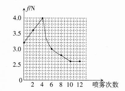 请你在图丙中描点,并用平滑曲线画出摩擦力与喷雾次数的关系图像。
