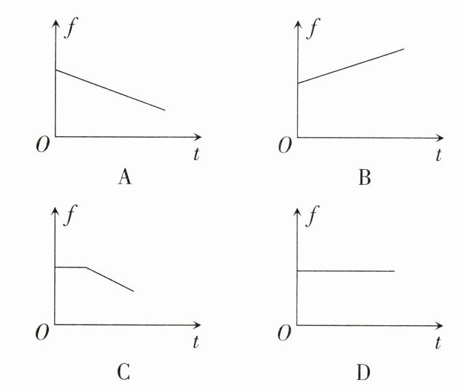 14. 如图所示,质量为10 kg的物体在水平力F作用下,静止在竖直墙上,在力F逐渐减小的过程中,物体静止一段时间后,开始向下加速运动。则在这个过程中,摩擦力f与时间t的关系,下列图像符合情况的是 ( )