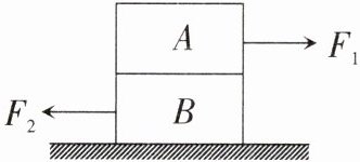 13. 如图所示,A、B两物体叠放在水平桌面上,受到两个水平拉力而保持静止,已知F1 = 5 N,F2 = 3 N。那么物体B受物体A和水平桌面的摩擦力大小应分别为 ( )