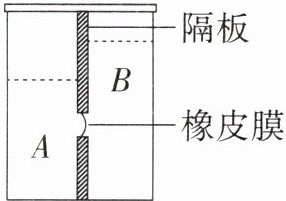 10. 如图所示,用隔板将容器分成左、右两部分,隔板下部有一个圆孔用薄橡皮膜封闭。当在容器左、右两部分注入不同深度的两种液体A、B时(液面位置如图中虚线所示),橡皮膜发生了形变,形变情况如图所示。请你分析判断ρA______(选填“>”或“<”)ρB,并写出判断依据:______________________________。