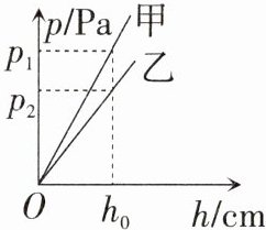 8. 小亮在研究液体内部压强的规律时,大胆探索,用甲、乙两种液体多次实验,根据实验数据画出了液体的压强p随深度h变化的图像如图所示。则甲、乙两种液体的密度关系是 ( )