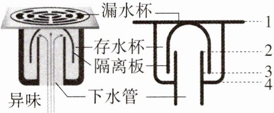 6. 如图是一种嵌于厨房或卫生间地面的地漏及其结构示意图。下列有关说法错误的是 ( )