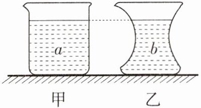5. 如图所示,水平桌面上有甲、乙两个质量相同的薄壁容器,两个容器开口大小相同、底面积相同,分别装有质量相等的a、b两种液体,两个容器中的液面高度相同。下列说法正确的是 ( )