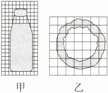 (2)瓶身上标有“净含量330 mL”的字样,表示瓶子内水的体积为330 mL,则水的重力$G = mg = \rho Vg = 1.0\times10^{3} kg/m^{3}\times330\times10^{-6} m^{3}\times10 N/kg = 3.3 N$,因瓶子的质量忽略不计,故瓶子对方格桌布的压力$F = G = 3.3 N$,由图乙可知,受力面积为15个方格的面积和,即$S = 15\times1 cm\times1 cm = 15 cm^{2}=1.5\times10^{-3} m^{2}$,这瓶水对方格桌布的压强$p_{2}=\frac{F}{S}=\frac{3.3 N}{1.5\times10^{-3} m^{2}}=2200 Pa$。