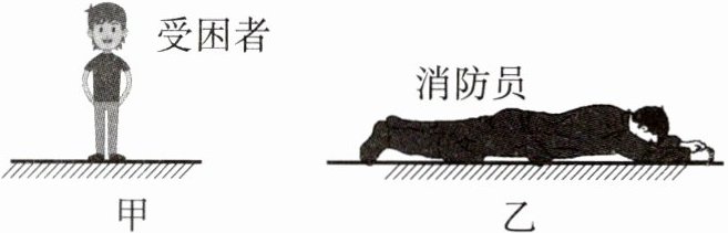 6. 当有人受困于淤泥中时,消防员常常会趴在淤泥地上,让受困者伏在其背部用力即可从淤泥里成功脱离。图甲模拟的是受困者双脚站立时的场景,图乙模拟的是消防员趴在淤泥地上的场景。受困者的质量为$50\ kg$,每只脚与地面的接触面积为$200\ cm^{2}$。($g$取$10\ N/kg$)
