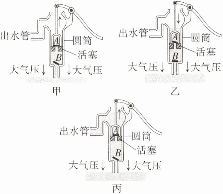 (2)压下活塞时,阀门B______,活塞下面的水推开阀门____,涌到活塞上面。