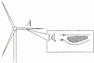 答:叶片A会顺时针转动。在流体中,流速越大的位置,压强越小。叶片A的形状上平下凸,当风吹过时,叶片A上方空气流速小压强大,叶片A下方空气流速大压强小,从而产生向下的压强差,进而产生向下的压力差,叶片A顺时针转动。