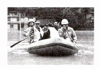 10. 夏季我国南方部分地区遭遇了大规模的强降雨袭击,冲锋舟在救灾中发挥了重要作用。如图所示,冲锋舟的自重为6×10³ N,冲锋舟满载时,排开水的体积是1.4 m³,假设人的平均质量为60 kg。则:(g取10 N/kg,$\rho_{水}=1.0×10^{3}$kg/m³)