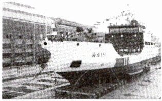 4. 如图是我国首艘具备破冰能力,排水量为2 400 t的大型航标船“海巡156”,是我国“陆海空天”一体化水上交通运输安全保障体系的重要组成部分。下列有关该船的说法正确的是(ρ_{海水}>ρ_{江水})( )