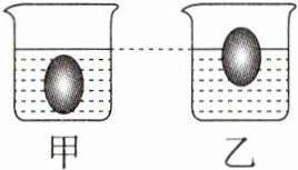 3. 如图所示,甲、乙两个相同的杯子里盛有不同浓度的盐水,将它们放在同一水平面上,将两个完全相同的鸡蛋分别放入两杯中。当鸡蛋静止时,两个杯中的液面恰好相平,则( )