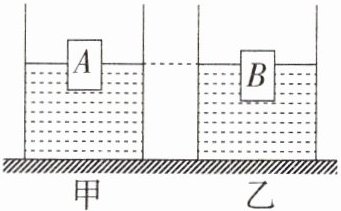13. 如图所示,甲、乙两个完全相同的容器中盛有两种不同的液体,把两个完全相同的长方体A、B分别放入这两种液体中,均处于漂浮状态,静止时两个容器中的液面相平,A、B在两种液体中所受的浮力分别为$F_{A}$、$F_{B}$,液体对容器底的压强分别为$p_{甲}$、$p_{乙}$,则 ( )