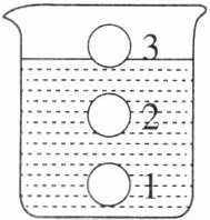 9. 将乒乓球压入水底,松手后乒乓球上浮过程中经过位置1和位置2,最终在位置3静止,如图所示。则乒乓球 ( )