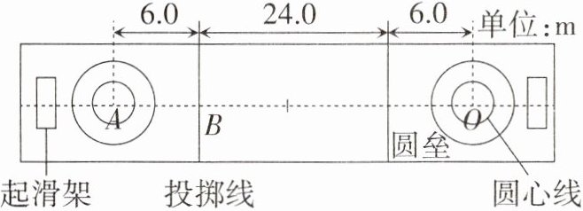 惯性 60 72 **解析**:冰壶离开手后还能够继续向前运动是因为冰壶具有惯性,要保持原来的运动状态。由图可知,从出发点A被运动员推着运动6.0 m,到达投掷线,冰壶受到推力的作用,并且在推力的方向上通过了距离,所以推力对冰壶做了功;而在BO阶段冰壶虽然通过了一段距离,但不再受到推力的作用,运动员对冰壶不做功,所以,运动员对冰壶做的功W = Fs = 10 N×6.0 m = 60 J。冰壶克服摩擦力运动的距离s′ = 6.0 m + 30.0 m = 36.0 m,冰壶克服摩擦力所做的功W′ = fs′ = 2 N×36.0 m = 72 J。