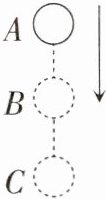 10. 在物体下落过程中,运动的速度会越来越大。一个小球由A点自由下落,相继经过B、C两点,已知$AB = BC$,如图所示。小球在AB段重力做的功为$W_1$,做功的功率为$P_1$;在BC段重力做的功为$W_2$,做功的功率为$P_2$,则$W_1$____$W_2$,$P_1$____$P_2$。(均选填“>”“<”或“=”)