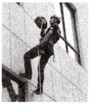 9. 如图是一款爬绳机,这款爬绳机可以不消耗人的体能,轻松攀爬、下降,可用于消防救援、矿井救援及桥梁检测维修等等。爬绳机的质量为10 kg,静止在水平地面上时与地面的接触面积为0.1 m²。在某次爬升中,将一个质量为70 kg的工人从地面匀速提升12 m高,用时1 min。求:(g取10 N/kg)