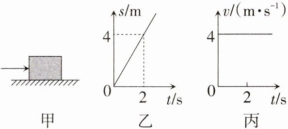 7. 如图甲所示,一物体在水平地面上做直线运动,当物体运动的路程和时间图像如图乙所示时,受到的水平推力为$F_1$;当物体运动的速度和时间图像如图丙所示时,受到的水平推力为$F_2$,两次推力的功率分别为$P_1$、$P_2$。下列关系正确的是( )