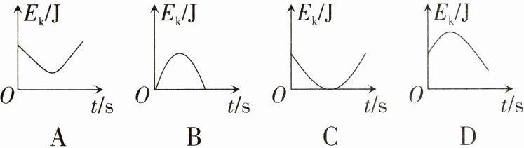 10. 在参加太原市中考体育时,小华在掷实心球项目中获得了满分。实心球离开手后在空中自由飞行,在空中飞行过程中动能$E_k$随时间$t$变化的图像最接近下图中的( )