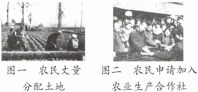 (1)分别指出下列图片反映的土地所有制形式。农民加入农业生产合作社时遵循怎样的原则?(3分)