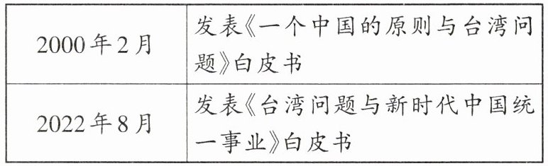 命题意图:本题设置真实任务情境,考查新时代推进祖国完全统一的方略。