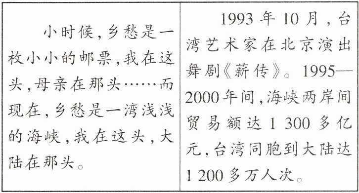 (4)综上所述,谈谈你对祖国统一发展趋势的认识。(2分)