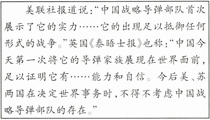 (2)根据下面材料并结合所学知识,分析中国战略导弹部队的建立与发展产生了什么影响。(2分)
