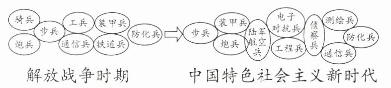 1. 下图展示了我国陆军兵种的变化情况。对此解读正确的是 ( )