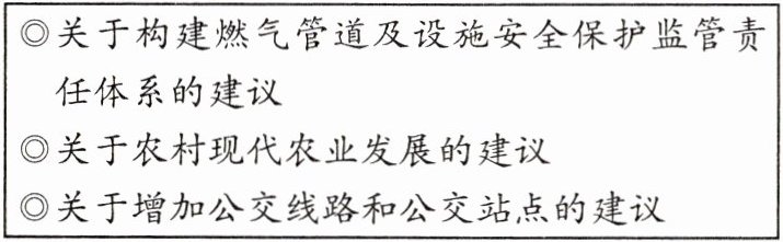 2. 小雯同学登录市人大官网,查阅到部分人大代表的建议(见下表):