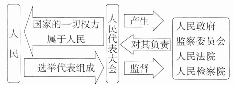 B 解析:本题考查设置国家机构。从图中我国国家机构的产生方式可以看出,我国国家机构实行民主集中制原则,人民代表大会由人民选举代表组成,人民代表大会是国家的权力机关,①③正确;人民间接参与国家事务的管理,②错误;国家权力机关在国家机构中居于主导地位,④错误。故选B。