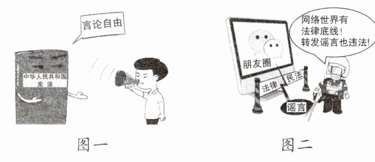 (2)①法治与自由相互联系,不可分割。一方面,法治标定了自由的界限,自由的实现不能触碰法律的红线,违反法律可能付出失去自由的代价;另一方面,法治是自由的保障,人们合法的自由和权利不受非法干涉和侵害。法治既规范自由又保障自由。(2分)②社会生活中,有边界才有秩序,守底线才享自由。自由不是为所欲为,它是有限制的、相对的。必要的限制是对自由的保护,无限制的自由只会走向自由的反面,导致混乱与伤害。(2分)