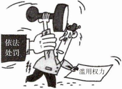 **A** **解析**:本题考查规范权力运行。漫画中,对滥用权力的某官员依法进行处罚,表明国家权力必须严格按照法定的途径和方式行使,必须在宪法和法律限定的范围内行使;国家机关行使权力应当有法律依据,不能超越权限行使权力,也不能滥用权力,任何超越权限、滥用职权的行为均应承担法律责任,①②③说法正确。有权不可任性,法定职责必须为,法无授权不可为,④说法错误。故选A。