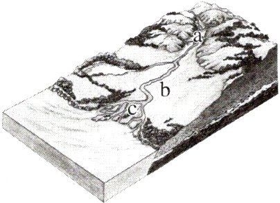 |____|c 入海口(河口)|近似三角形的堆积体向海洋一侧扩展发展而成|