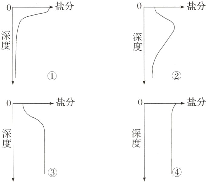 (2023·浙江1月选考15~16题)盐土是排水不畅或蒸发强烈地区具有明显积盐过程的土壤。如图为我国某内陆盆地山前冲积平原断面图,沿坡分布多种盐土。完成1~2题。