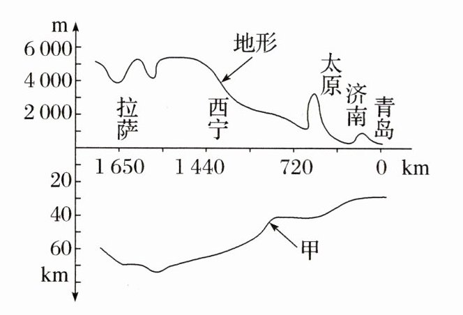 (2024·湖南衡阳模拟)如图为青岛—拉萨地形起伏与相应地壳厚度变化对比剖面图。读图,完成1~2题。