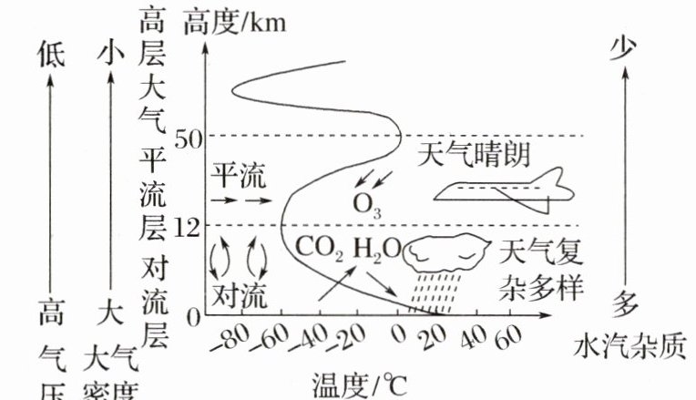 提示:低纬度地区地面受热多,对流活动旺盛,因此,对流层的高度高;而高纬度地区地面受热较少,对流活动较弱,所以对流层的高度低;中纬度地区则居中。