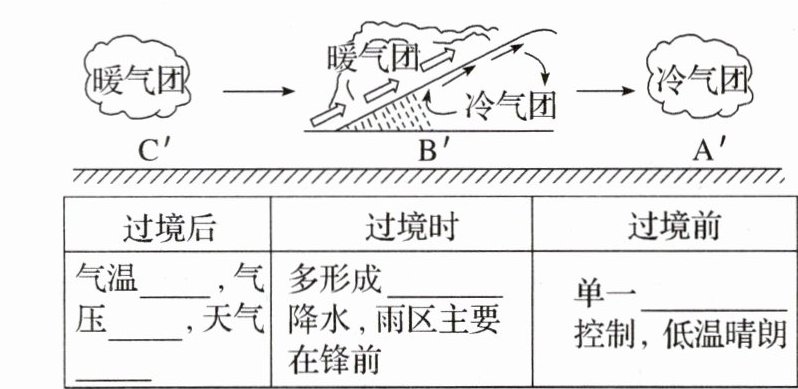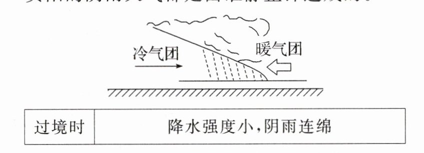 提示:锋面经过时一定会带来天气变化,但不一定产生降水。当锋面上的暖气团比较干燥时,就不能形成降水。