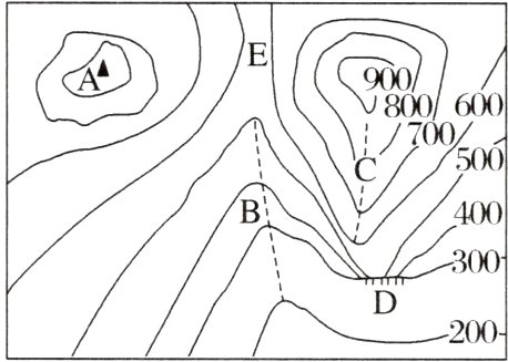 |E|____|两个山峰和两个山谷等高线之间的区域|