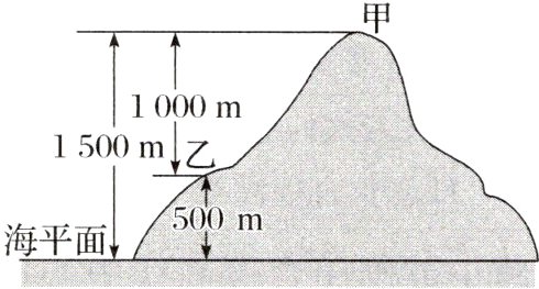 甲点的海拔 1000 m 乙点的海拔 1500 m 甲、乙的相对高度 500 m
