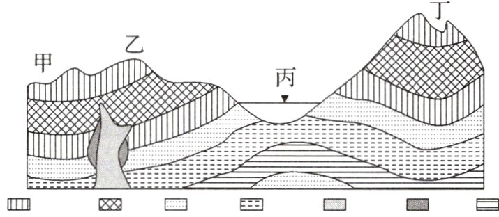 4.甲—丁四地沉积岩地层抬升幅度最大的是( )